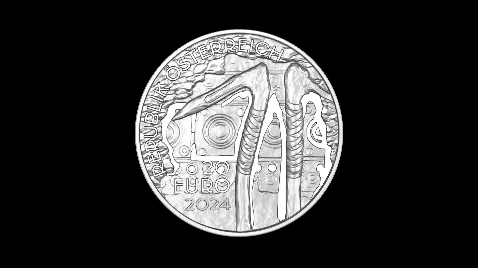 Die erste 20-Euro-Münze "Bergbau" aus edlem Sterling-Silber (925/1000) zeigt auf ihrer Wertseite zwei Hirschgeweihpickel mit Bronzespitzen aus den prähistorischen Bergwerken. Dieses Werkzeug ist eine raffinierte und weltweit einmalige Innovation der damaligen Zeit und ermöglichte kräfteschonenden und effizienten Salzabbau.