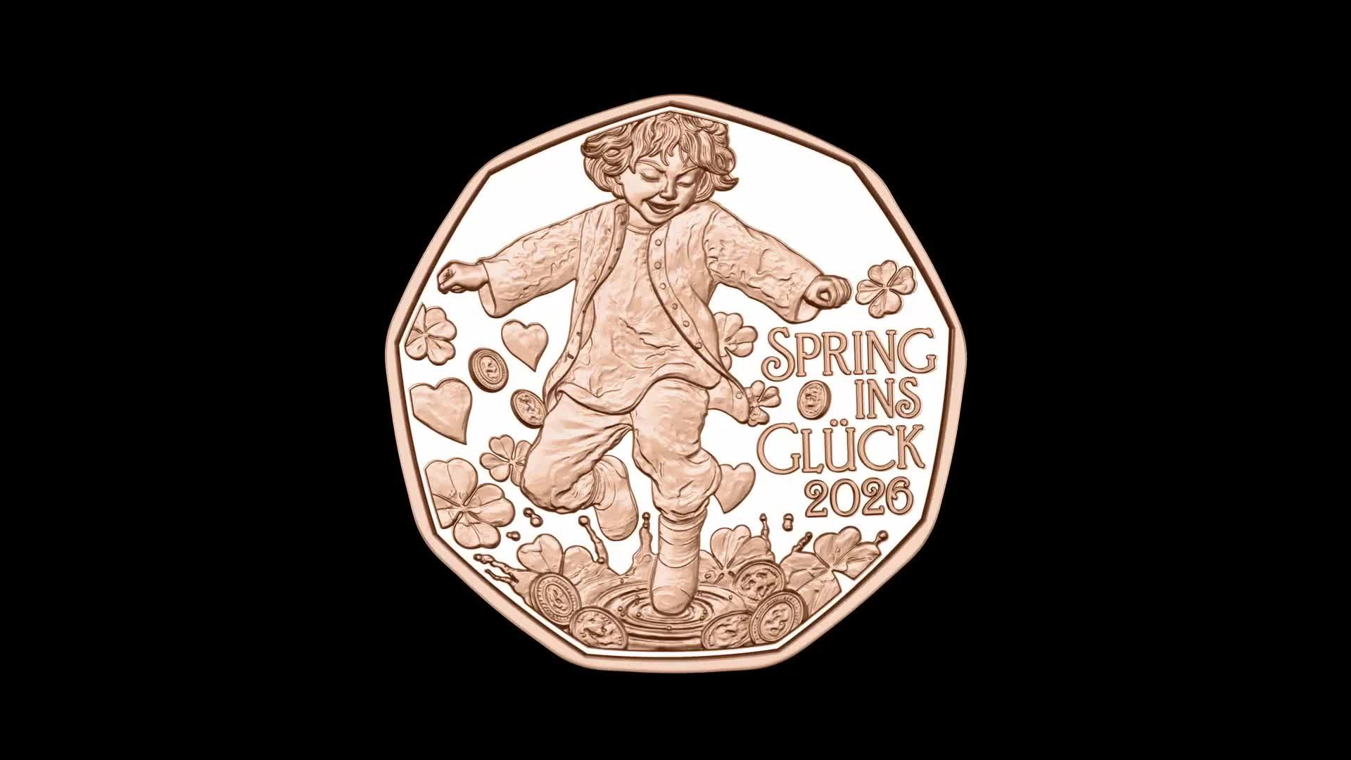 Österreichs 5-Euro-Neujahrsmünze 2026 aus Kupfer: "Spring ins Glück"