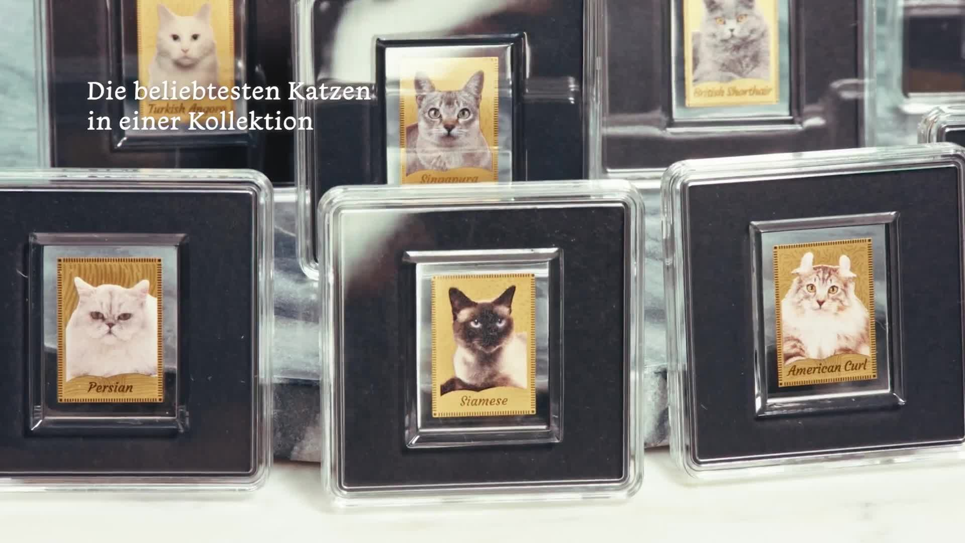 Nun werden die beliebtesten Haustiere Österreichs auf glanzvolle Weise gewürdigt! Die einzigartige Kollektion meisterhaft geprägter Münzbarren aus reinem Gold (999/1000) ehrt die beliebtesten Katzenrassen auf eindrucksvolle Weise. Jeder der insgesamt 12 Goldbarren zeigt ein niedliches Katzen-Portrait in brillanten Farben und hoher Detailfülle. Die entzückenden Motive sowie die aufwendige Veredelung mittels fotorealistischem Farbdruck bringen die Augen von Sammlern wie auch Katzen-Fans gleichermaßen zum Leuchten.