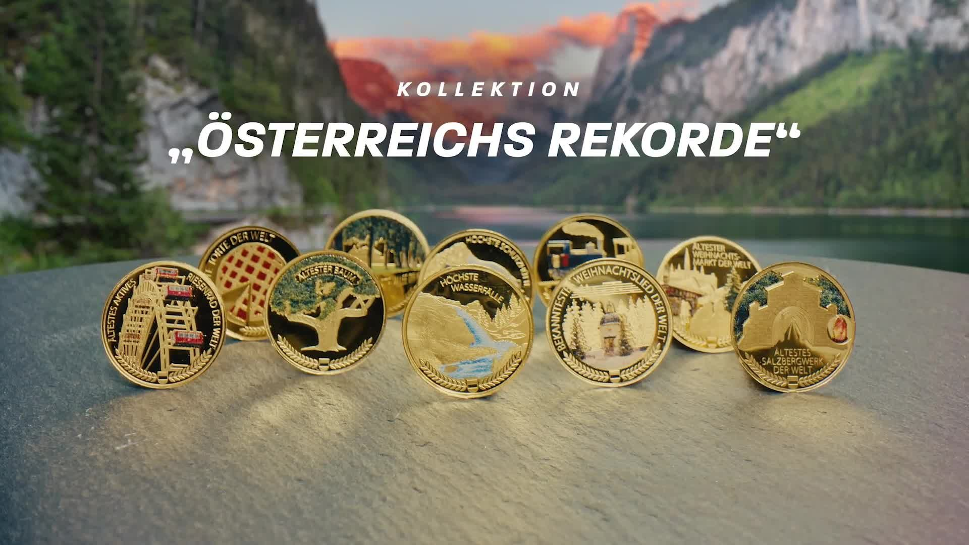 Das älteste aktive Riesenrad der Welt in Wien, die höchsten Wasserfälle Europas im Nationalpark Hohe Tauern, das älteste Salzbergwerk der Welt in Hallstatt - Österreich ist ein Land der Rekorde! Hier fährt die älteste Dampf-Zahnradbahn Europas, hier wurde das bekannteste Weihnachtslied der Welt komponiert. Unser schönes Heimatland steckt voller beeindruckender Spitzenpositionen und außergewöhnlicher natürlicher Phänomene, die bis weit über die Landesgrenzen hinaus berühmt sind. Nun werden Österreichs Rekorde erstmals auf wertvolle und unvergängliche Weise geehrt: auf glanzvollen Gedenkausgaben aus reinem Gold (999/1000)!