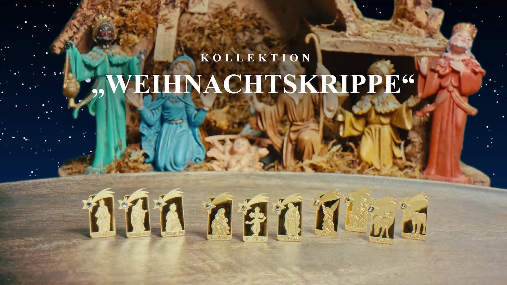 Die zehn wichtigsten Figuren der weihnachtlichen Krippen-Szene wurden in Barren aus reinstem Feingold (999,9/1000) festgehalten. Jede Ausgabe wurde mit Liebe zum Detail gestaltet und besonders filigran in der herausragenden Prägequalität Spiegelglanz geprägt. Mittels aufwendiger Prägetechnik ist es gelungen, den Weihnachsstern, der auf jedem Barren abgebildet ist, über die Ränder hinaus zu prägen! Zudem wurde jeder Stern mit einem glitzernden Kristall versehen. Erhältlich sind die Goldbarren als Komplett-Satz, inklusive hochwertigem Krippenfolder, der aufgeklappt und unter dem Weihnachtsbaum präsentiert werden kann.