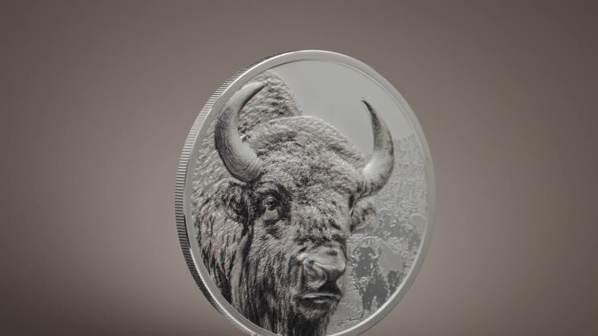 Die beeindruckende 1-Unzen-Hochrelief-Silbermünze zu Ehren des Bison