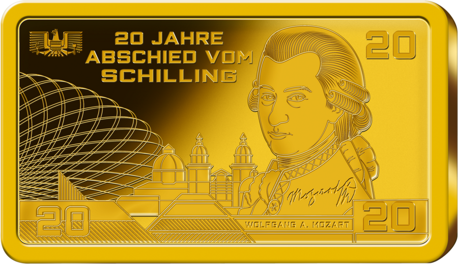 Goldbarren als optische Erinnerung an unsere Schilling-Scheine und Österreichs bekanntestes Wahrzeichen