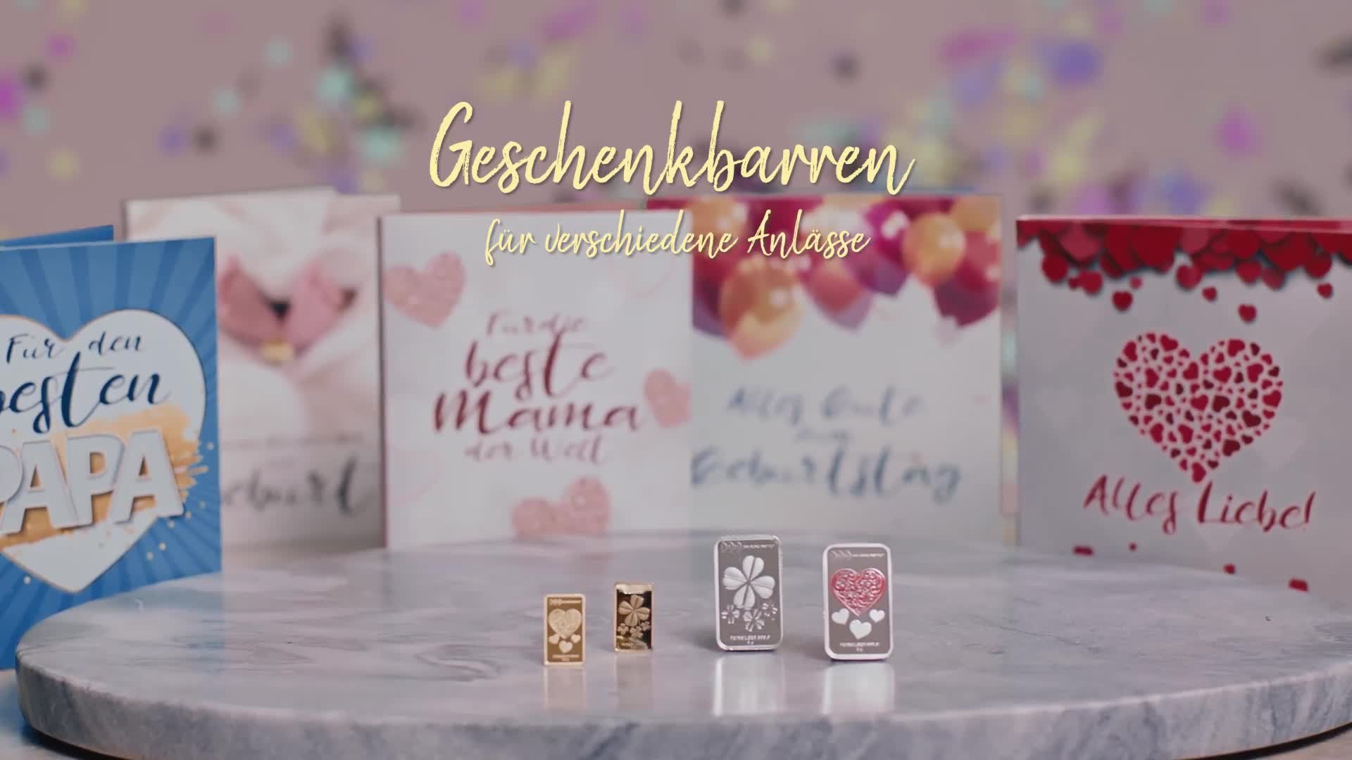 Silber-Geschenkbarren "Kleeblatt" mit Karte "Alles Liebe"